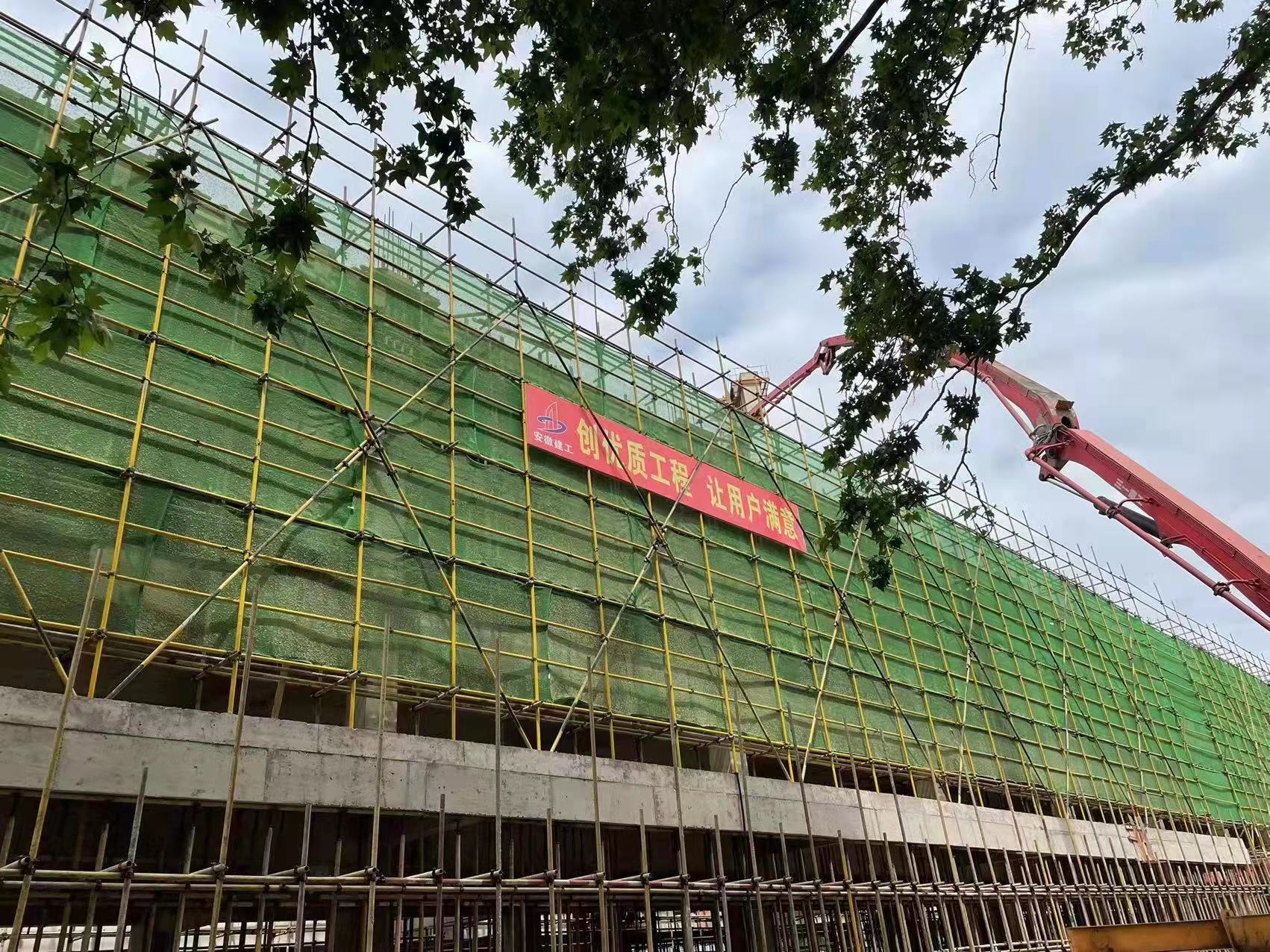5月7日,記者來到正在建設中的田家庵區(qū)老市政府停車場看到,工地上的塔吊揮舞著“長臂”,將一捆捆鋼筋和木板運送至4樓樓頂。工人楊志斌等人正聚精會神地安裝模板、綁扎鋼筋,現(xiàn)場一片熱火朝天的忙碌景象。