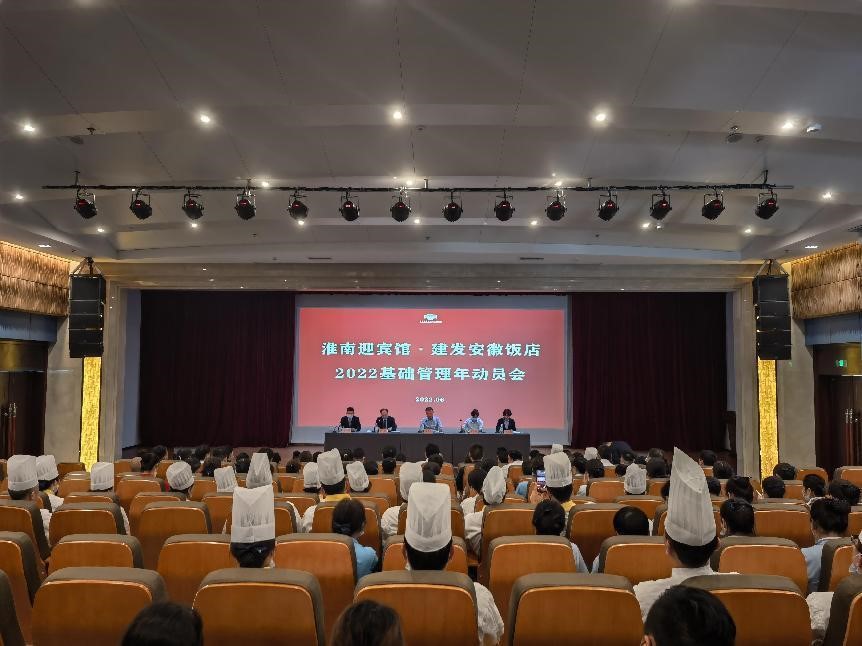參會人員有公司領(lǐng)導(dǎo)班子、飯店管理團(tuán)隊及全體職工,會上傳達(dá)了《淮南迎賓館·建發(fā)安徽飯店2022基礎(chǔ)管理年活動方案》文件。
