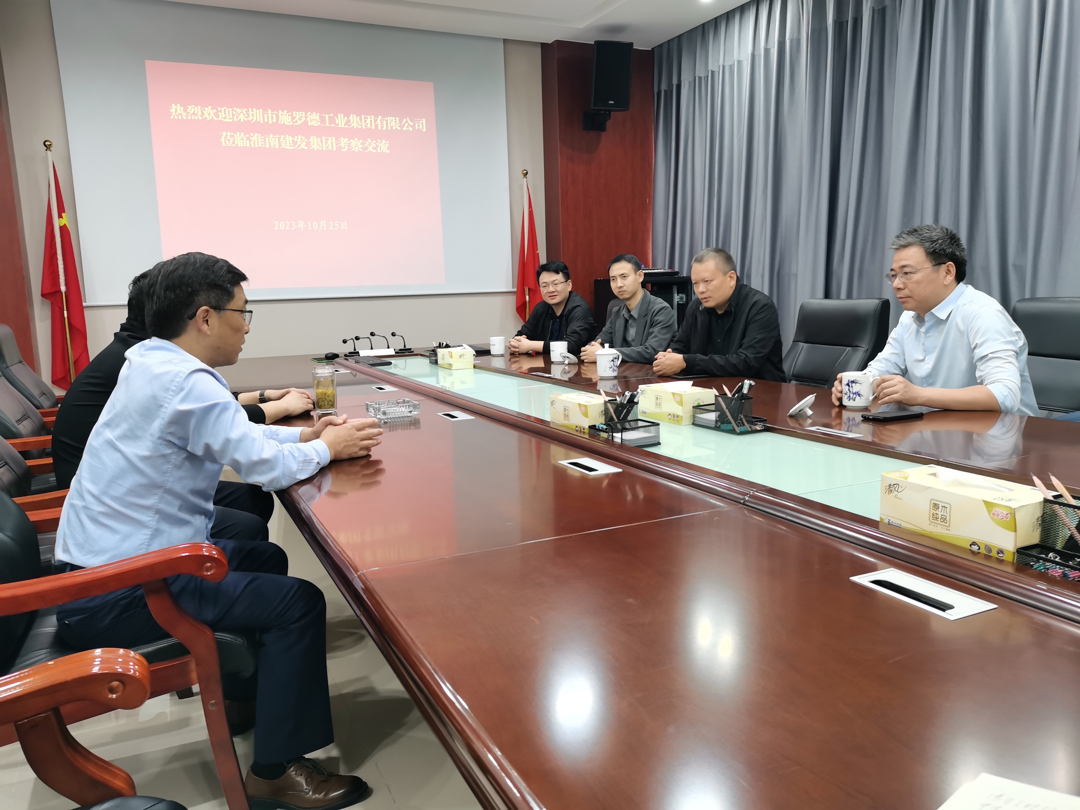10月25日,淮南建發(fā)集團黨委書記、董事長宋道河在集團公司22樓會議室接待了深圳市施羅德工業(yè)集團有限公司辦公室主任毛國華一行。毛國華介紹了深圳市施羅德工業(yè)集團聚焦城市地下空間智能機器人裝備及定制化解決方案,加強與清華大學合肥公共安全研究院合作復制推廣成功案例,加快推進淮南城市生命線高端裝備智能共享制造基地項目落地建設等情況。